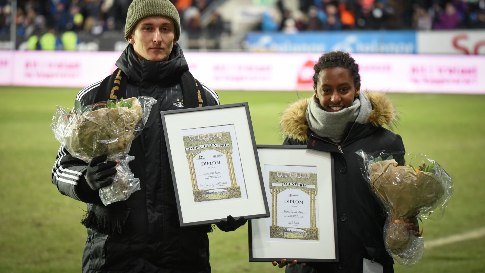 Erlend Dahl Reitan ble tildelt Ivers talentpris i pausen mellom Rosenborg og Glimt på søndag. Samtidig delte Trøndelag Fotballkrets ut sin talentpris til Kristin Yemrach Marøy.