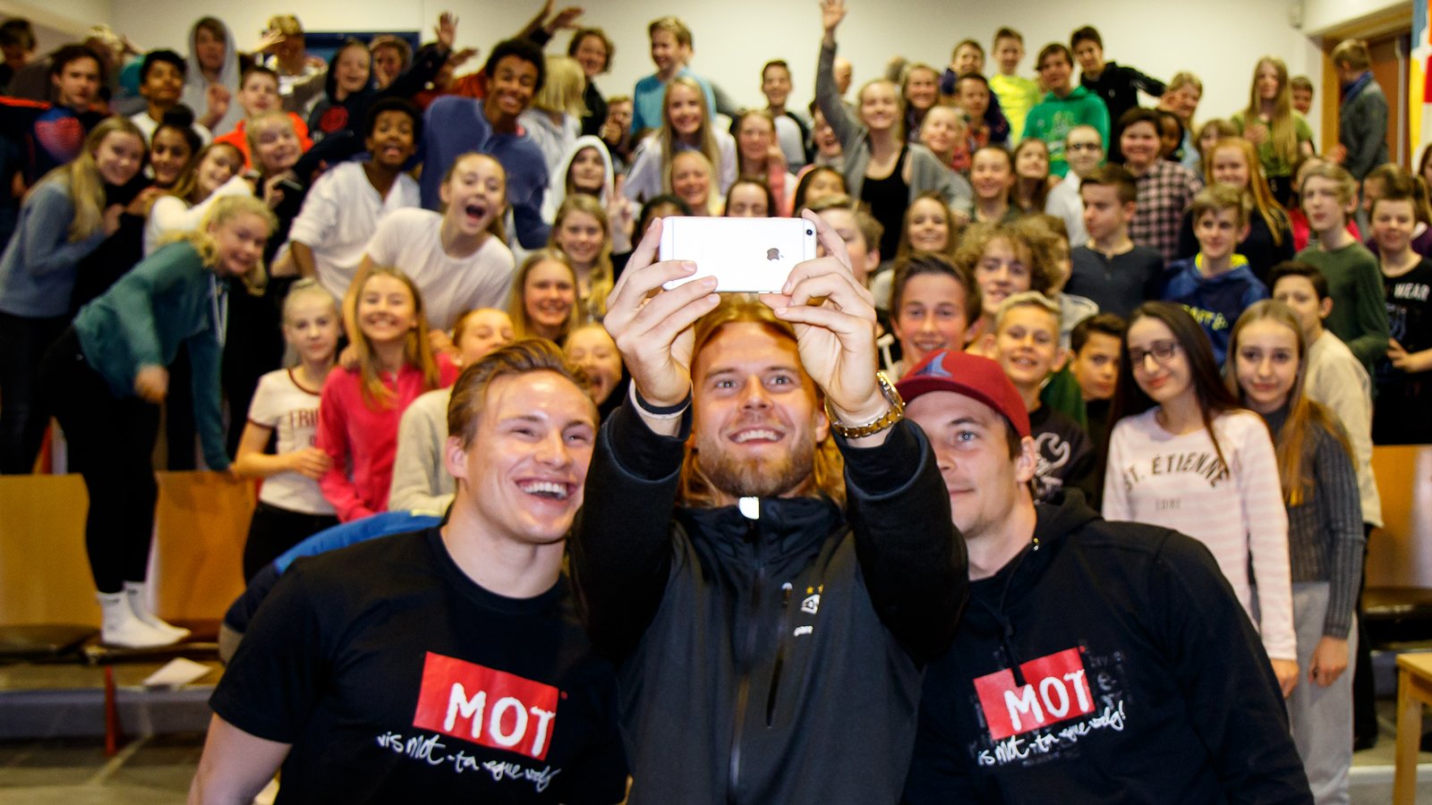 Tirsdag formiddag besøkte Jonas Svensson, Christian Gytkjær og Mike Jensen Sunnland ungdomskole sammen med MOT.
