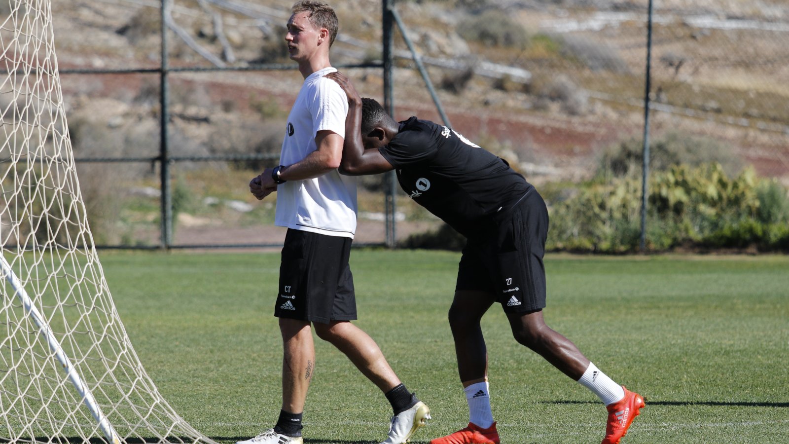 Planen var at det skulle spilles 11 mot 11 på tirsdagens trening. Etter en runde med det medisinske teamet på frokosten ble det endret til 8 mot 8. Treningen begynner å sette sitt spor hos enkelte.