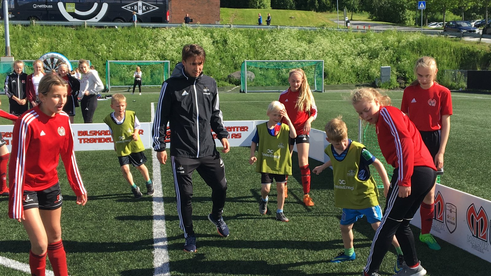 Denne gangen var det Yann-Erik de Lanlay, Anders Trondsen og Erik Botheim som tok turen i RBK-bussen fra VY. De tok en liten prat med speaker på Viksletta sammen med Allan Rødfjell fra Malvik Fotball, før de kom seg ut på 3v3-banene for å spille fotball med barna. Det ble noen fine kamper før spillerne stilte opp for autografer og selfies.