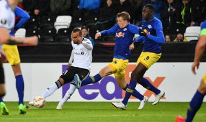 LEIPZIG: Tore Reginiussen var sist på begge målene i Leipzig. Det siste etter å ha stanget inn utligningen på bakre stolpe.